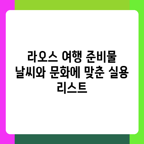 뜨거운 열대의 햇살과 신비로운 불교 문화가 어우러진 라오스! 여행을 계획하고 있다면 설렘과 함께 걱정도 앞서시죠? 낯선 곳에서의 여행은 철저한 준비가 성공적인 여정의 시작이라는 사실을 잊지 마세요. 이 글에서는 라오스의 날씨와 문화를 고려하여 실제 여행에 도움이 되는 필수 준비물과 팁을 알려드리겠습니다. 여러분의 라오스 여행이 더욱 풍성하고 즐거운 추억으로 가득 차길 바라며, 지금부터 함께 준비해보아요!