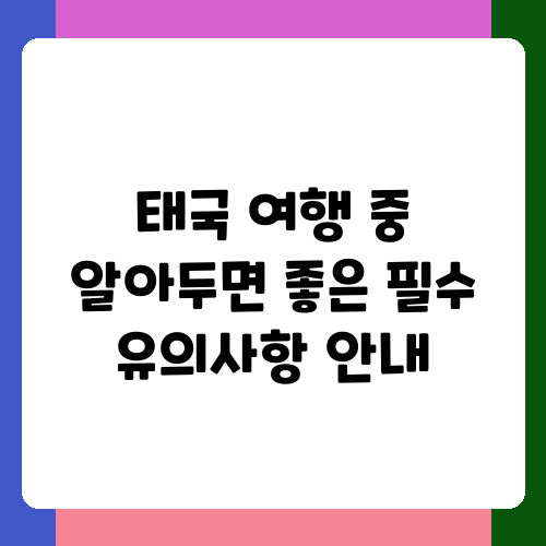 즐거운 태국 여행을 위해 꼼꼼하게 확인하고, 안전하고 행복한 추억을 만들어 오세요! 혹시 궁금한 점이나 추가적으로 필요한 정보가 있다면 언제든지 질문해 주세요. 함께 태국 여행의 팁을 나누면서 더욱 풍성한 여행 정보를 만들어 갈 수 있으면 좋겠습니다.
