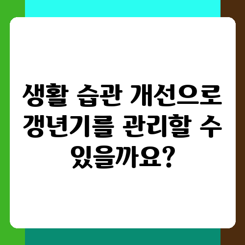 생활 습관 개선으로 갱년기를 관리할 수 있을까요?