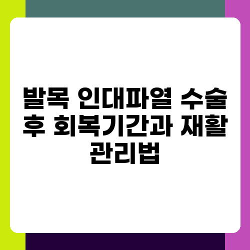 발목 인대 파열은 갑작스러운 접질림이나 충격으로 인해 발생하는 흔한 부상입니다. 수술이 필요한 경우, 회복 과정이 쉽지 않다는 것을 알고 계실 거예요. 하지만 걱정하지 마세요! 이 글에서는 발목 인대 파열 수술 후 회복 기간과 재활 관리법에 대한 자세한 정보를 제공하여 여러분의 빠르고 안전한 회복을 돕고자 합니다. 수술 후 어떤 어려움이 있을지 미리 알고 준비한다면, 심리적으로도 더욱 안정적으로 회복 과정을 헤쳐나갈 수 있을 거예요.