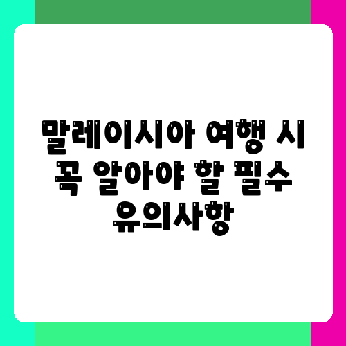 말레이시아, 아름다운 자연과 다채로운 문화가 어우러진 매력적인 나라죠. 하지만 즐거운 여행을 위해서는 몇 가지 필수 유의사항을 숙지하는 것이 중요해요. 이 글에서는 말레이시아 여행 중 꼭 알아두면 좋은 정보들을 여러분과 함께 나누고자 합니다. 낯선 곳에서 발생할 수 있는 예상치 못한 상황들을 미리 준비하고 대비한다면 더욱 안전하고 즐거운 여행이 될 거예요. 자, 그럼 지금부터 말레이시아 여행을 위한 필수 체크리스트를 확인해 볼까요?