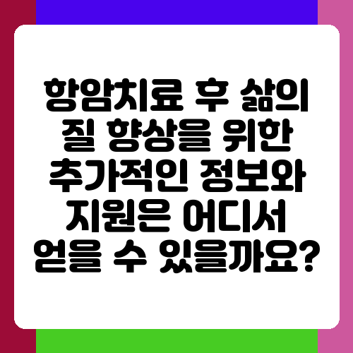 항암치료 후 삶의 질 향상을 위한 추가적인 정보와 지원은 어디서 얻을 수 있을까요?