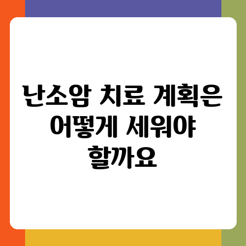 난소암의 치료 계획은 암의 종류, 병기, 환자의 건강 상태 등 여러 요인을 고려하여 개별적으로 수립됩니다. 수술, 항암 화학 요법, 방사선 치료 등 다양한 치료 방법이 있으며, 환자의 상태에 따라 단독 또는 병행 치료를 받을 수 있습니다. 수술은 난소 종양을 제거하는데 주로 사용되고, 항암 화학 요법은 수술 후 남아 있을 수 있는 암세포를 제거하는 데 효과적이에요. 방사선 치료는 암세포를 파괴하는데 사용되지만, 난소암에서는 수술이나 항암 화학 요법에 비해 사용 빈도가 낮다고 합니다. 치료 과정은 힘들 수 있지만, 담당 의료진과의 꾸준한 소통과 정기적인 검진을 통해 최선을 다한다면 충분히 극복할 수 있습니다. 치료 계획 수립 과정에서 의료진과 충분한 상담을 통해 본인에게 맞는 최적의 치료 계획을 선택하는 것이 중요합니다. 그리고 긍정적인 마음가짐을 유지하는 것 또한 중요하다는 것을 잊지 마세요.