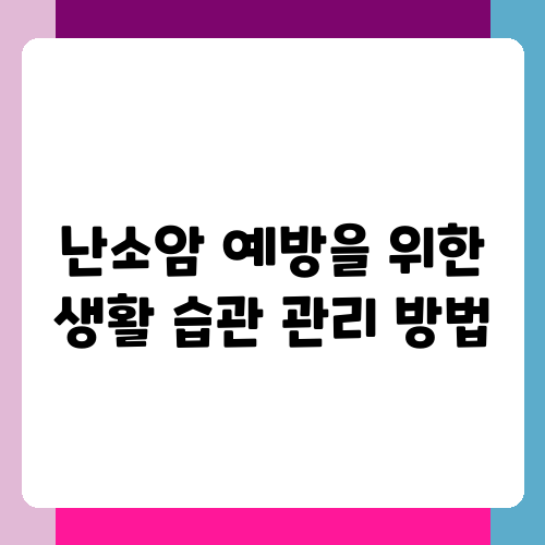 난소암 예방을 위해서는 건강한 생활 습관을 유지하는 것이 매우 중요합니다. 균형 잡힌 영양 섭취, 규칙적인 운동, 금연, 절주 등은 난소암 발병 위험을 줄이는 데 도움이 된다고 알려져 있습니다. 또한, 정기적인 건강 검진을 통해 난소암을 조기에 발견하고 치료하는 것도 중요합니다. 특히 가족력이 있는 경우에는 더욱 주의가 필요합니다. 가족 중에 난소암 환자가 있다면, 정기적인 검진을 통해 꾸준히 건강 상태를 모니터링하는 것이 좋습니다. 건강한 생활 습관은 난소암뿐 아니라 다른 질병의 예방에도 매우 중요한 역할을 합니다. 꾸준한 자기 관리를 통해 건강하고 행복한 삶을 누리시길 바랍니다.