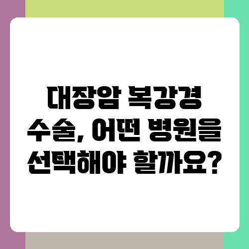 대장암 복강경 수술, 어떤 병원을 선택해야 할까요?
