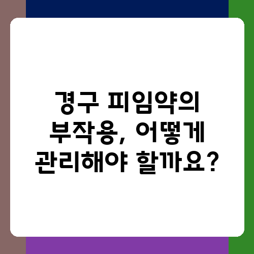 경구 피임약은 효과적인 피임법이지만, 부작용이 나타날 수 있다는 점을 알아두셔야 해요. 흔한 부작용으로는 유방 압통, 메스꺼움, 체중 변화 등이 있답니다. 하지만 이러한 부작용은 대부분 시간이 지나면서 자연스럽게 사라지거나, 약물 조절을 통해 완화될 수 있어요. 만약 부작용이 심하거나 오랫동안 지속된다면, 의사와 상담하여 다른 종류의 피임약으로 변경하는 것을 고려해 볼 수 있답니다. 저는 처음 경구 피임약을 복용했을 때 메스꺼움이 심했는데, 의사와 상담 후 복용 시간을 바꾸니 많이 좋아졌어요. 또한, 꾸준히 자신의 몸 상태를 관찰하고, 이상 증상이 나타나면 바로 의사에게 알리는 것이 중요하죠. 정기적인 검진도 잊지 말아야 하고요.