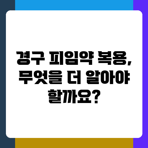 경구 피임약은 종류가 다양하고, 각각의 복용 방법이 조금씩 다르답니다. 처방받은 약의 설명서를 꼼꼼하게 읽어보고, 의사나 약사의 설명을 충실히 따라야 해요. 보통은 매일 같은 시간에 복용하는 것이 중요하며, 혹시라도 복용 시간을 놓쳤다면 잊지 말고 바로 복용하도록 하세요. 만약 2알 이상 복용 시간을 놓쳤다면, 의사와 상담하는 것이 좋습니다. 잊지 말고, 복용 일정을 체크할 수 있는 앱이나 달력을 활용하는 것도 도움이 될 거예요. 저는 개인적으로 알림 기능이 있는 앱을 활용해서 꾸준히 복용하고 있어요. 또한, 약을 복용하면서 갑자기 구토나 설사를 하게 되면 피임 효과가 떨어질 수 있으니, 이러한 증상이 나타나면 즉시 의사와 상담하는 것이 좋답니다. 잊지 마세요, 경구 피임약 복용은 단순히 약을 먹는 것 이상으로, 자신의 건강을 꼼꼼히 관리하는 과정이라는 것을요.