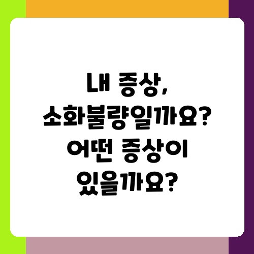 소화불량의 증상은 사람마다 다를 수 있지만, 대표적인 증상으로는 상복부 불편감, 속쓰림, 팽만감, 트림, 메스꺼움, 구토 등이 있습니다. 심한 경우에는 복통이나 변비, 설사를 동반할 수도 있고요. 저는 속이 더부룩하고 답답한 증상이 주로 나타났어요. 그리고 식사 후에 특히 증상이 심해졌습니다. 이런 증상들이 꾸준히 나타나면 단순한 배탈이 아닌 소화불량일 가능성이 높다고 생각합니다. 물론 저의 경험이 모든 사람에게 적용되는 것은 아니지만, 소화불량을 의심할 만한 증상이 나타난다면 전문의의 진단을 받는 것을 추천드려요. 가볍게 여기지 말고, 정확한 진단을 받는 것이 중요합니다.