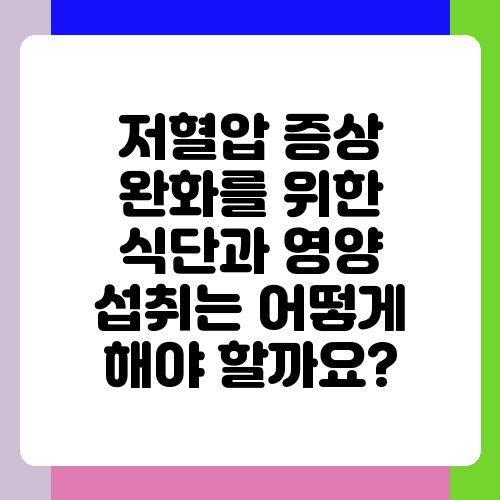 저혈압 증상 완화를 위한 식단과 영양 섭취는 어떻게 해야 할까요?