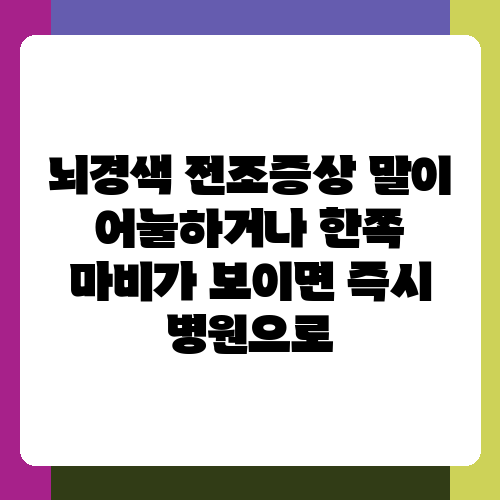 갑자기 말이 어눌해지거나 몸의 한쪽이 마비되는 경험, 상상만 해도 섬뜩하시죠? 이런 증상들은 뇌경색의 전조 증상일 수 있습니다. 뇌경색은 시간이 생명인 질병이에요. 빠른 대처가 생명을 구하고 후유증을 최소화하는 데 결정적인 역할을 한다는 사실, 알고 계셨나요? 이 글에서는 뇌경색의 전조증상과 대처법을 자세히 알려드리겠습니다. 함께 알아보고, 소중한 건강을 지키도록 해요.