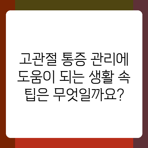 고관절 통증 관리에 도움이 되는 생활 속 팁은 무엇일까요?