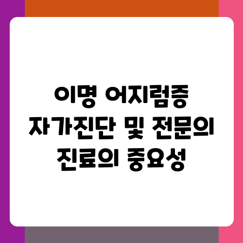 이명과 어지럼증 증상이 나타났다면, 먼저 본인 스스로 증상의 정도와 지속 시간을 기록해보세요. 이를 통해 의사에게 정확한 정보를 전달할 수 있습니다. 증상이 심하거나 지속적인 경우, 가볍게 여기지 말고 반드시 이비인후과 전문의를 찾아 진료를 받아야 합니다. 자가진단은 어디까지나 참고일 뿐이며, 정확한 진단과 치료는 전문가의 도움을 받는 것이 가장 중요해요. 의사는 환자의 병력과 증상을 종합적으로 고려하여 정확한 원인을 진단하고, 그에 맞는 적절한 치료 계획을 세워줄 것입니다. 혹시 겪고 계신 증상이 이명과 어지럼증이라면 늦추지 말고 병원에 방문하는 것을 추천드려요.