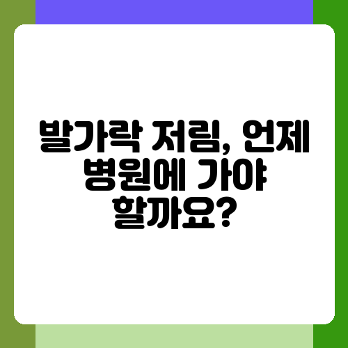 발가락 저림이 지속되거나 점점 심해진다면 병원을 방문하여 진료를 받는 것이 좋습니다. 특히 저림과 함께 통증, 감각 이상, 발의 변색 등 다른 증상이 동반된다면 더욱 주의가 필요합니다. 또한, 원인을 알 수 없는 발가락 저림이 갑자기 발생했거나, 가벼운 운동이나 활동에도 증상이 악화된다면 전문의의 도움을 받아야 합니다. 전문의는 발가락 저림의 원인을 정확하게 진단하고, 적절한 치료법을 제시할 수 있습니다. 자가 진단이나 민간요법에 의존하기보다는, 전문적인 의료진의 도움을 받는 것이 가장 안전하고 효과적인 방법입니다. 건강은 소중하니까요, 주저하지 말고 병원에 방문하세요.