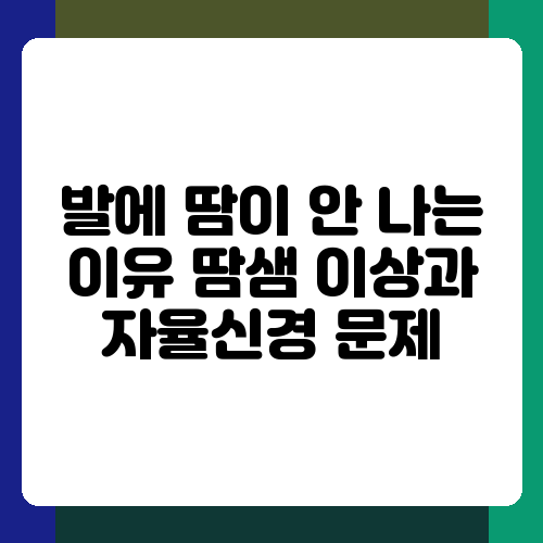 결론적으로, 발에 땀이 나지 않는 것은 땀샘의 이상이나 자율신경계의 문제일 수 있으며, 증상의 심각성이나 동반 증상에 따라 병원 방문이 필요할 수 있습니다. 자신의 증상을 정확히 파악하고 전문가의 진단을 받는 것이 중요합니다. 무엇보다 건강한 생활 습관을 유지하여 발 건강을 지키도록 노력하는 것이 좋습니다. 혹시 발에 땀이 안 나거나 불편함을 느끼신다면, 주저하지 말고 병원에 방문하여 진료를 받아보시길 바랍니다. 건강한 발, 건강한 삶을 위한 첫걸음을 내딛으세요!