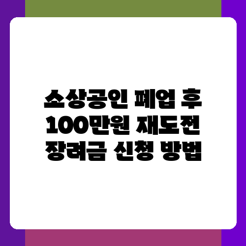 폐업의 아픔을 겪으셨나요? 다시 일어설 수 있도록 돕는 100만원 재도전 장려금, 신청 방법이 궁금하시죠? 힘든 시기를 극복하고 새롭게 도전할 수 있도록 자세한 정보와 함께 신청 과정을 안내해 드리겠습니다. 포기하지 마세요. 여러분의 재도전을 응원합니다.