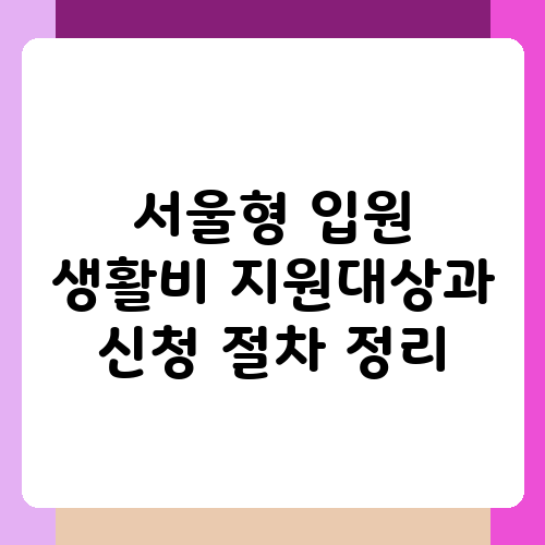 서울 시민 여러분, 혹시 갑작스러운 입원으로 경제적 어려움을 겪고 계신가요? 병원비 걱정 없이 치료에 집중할 수 있도록 서울시에서 입원 생활비를 지원하는 제도가 있다는 사실, 알고 계셨나요? 오늘은 서울형 입원 생활비 지원 대상과 신청 절차에 대해 자세히 알아보고, 신청 과정에서 궁금하실 수 있는 부분까지 꼼꼼하게 정리해 드리겠습니다. 함께 서울형 입원 생활비 지원 제도를 통해 든든한 지원을 받아보세요!