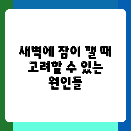 결론적으로, 새벽에 잠이 깨는 것은 여러 가지 이유 때문에 발생할 수 있고, 그 원인을 찾고 적절한 대처를 하는 것이 중요합니다. 자신의 수면 습관을 잘 살펴보고, 필요하다면 전문가의 도움을 받는 것도 좋은 방법입니다. 편안하고 숙면 가득한 밤을 보내시길 바랍니다.