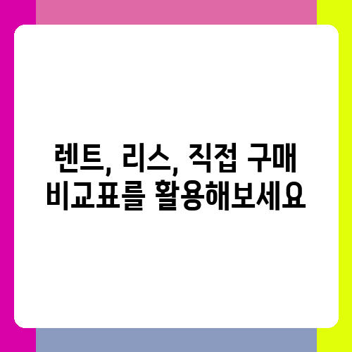 렌트, 리스, 직접 구매 비교표를 활용해보세요