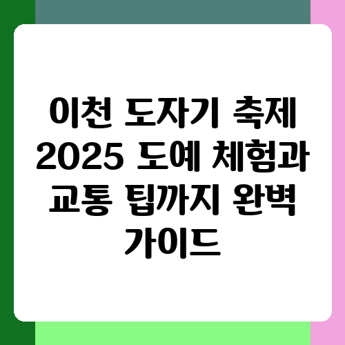 이천 도자기 축제는 매년 많은 사람들이 찾는 인기 축제죠. 2025년 축제도 기대가 큰데요, 도자기 체험부터 교통편까지 알차게 준비해서 후회 없는 추억을 만들고 싶으시죠? 이 글에서는 이천 도자기 축제를 더욱 풍성하게 즐길 수 있도록 도와드릴 팁들을 자세하게 알려드리겠습니다. 축제를 제대로 즐기고 싶은 분들은 끝까지 읽어보세요!