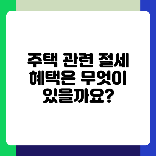 주택 관련 절세 혜택은 무엇이 있을까요?