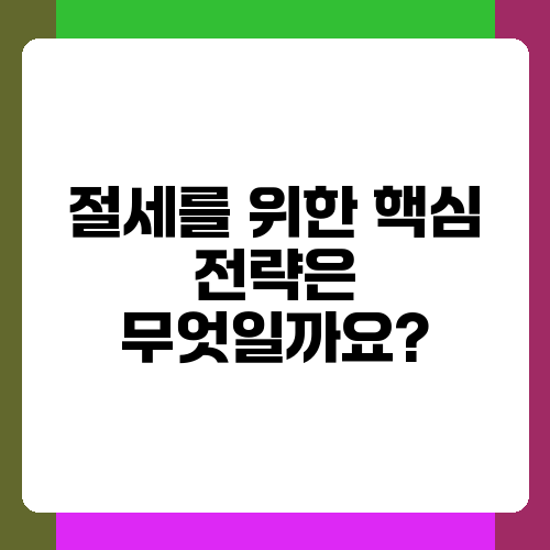 절세를 위한 핵심 전략은 무엇일까요?