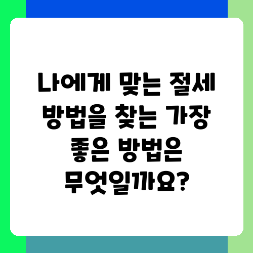 나에게 맞는 절세 방법을 찾는 가장 좋은 방법은 무엇일까요?