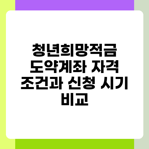 청년 여러분, 안녕하세요! 요즘 돈 모으기 정말 힘들죠. 하지만 희망을 잃지 마세요! 정부에서 지원하는 청년희망적금 도약계좌가 있다는 사실, 알고 계셨나요? 이 글에서는 청년희망적금 도약계좌의 자격 조건과 신청 시기를 자세하게 비교 분석하여 알려드리려고 합니다. 꼼꼼하게 읽어보시고, 나에게 맞는지 확인해보세요! 알뜰하게 저축하고 미래를 설계하는 데 도움이 될 거예요.