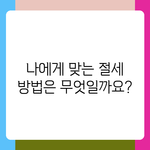 절세는 단순히 세금을 덜 내는 것이 아니라, 합법적인 범위 내에서 세금 부담을 줄이는 것을 의미합니다. 소득이 늘어날수록 절세의 중요성도 커지죠. 나에게 맞는 절세 방법을 찾기 위해서는 우선 나의 소득 구조와 재산 현황을 정확히 파악해야 합니다. 예를 들어, 주택 청약, 연금 저축, 소액 기부 등을 통해 소득 공제를 받을 수 있어요. 하지만 모든 절세 방법이 모든 사람에게 적용되는 것은 아니랍니다. 내 상황에 맞는 절세 방법을 찾는 것이 중요하고, 세무 전문가의 도움을 받아 효율적인 절세 전략을 수립하는 것을 추천드려요. 전문가의 도움을 받으면, 더욱 효과적이고 안전하게 절세를 할 수 있다는 장점이 있습니다.