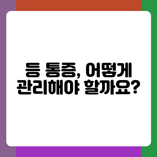등 통증은 단순히 참고 견딜 문제가 아니에요. 통증의 원인과 증상에 따라 다양한 관리법이 있습니다. 가장 기본적인 것은 약물 치료입니다. 진통제나 소염제를 복용하여 통증과 염증을 완화할 수 있습니다. 또한, 물리치료는 근육의 긴장을 풀어주고 통증을 완화하는 데 효과적입니다. 초음파 치료, 온열 치료, 전기 치료 등 다양한 물리치료 방법이 있습니다. 도수치료는 손으로 직접 척추와 근육을 치료하는 방법으로, 자세 교정 및 통증 완화에 효과적이라고 합니다. 요가나 필라테스와 같은 운동요법도 척추의 안정성을 높이고 근력을 강화하여 통증을 예방하고 관리하는 데 도움이 됩니다. 하지만 무엇보다 중요한 것은 평소 올바른 자세를 유지하고 규칙적인 운동을 하는 것이겠죠. 의사의 지시에 따라 꾸준히 치료를 받고, 생활 습관을 개선하는 것이 중요합니다.