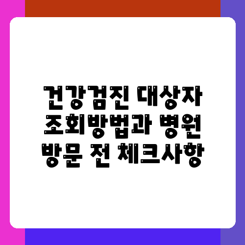 건강검진, 참 중요하죠. 하지만 언제 받아야 하는지, 어떻게 준비해야 하는지 막막하게 느껴지는 분들 많으실 거예요. 저도 처음 건강검진을 받을 때는 뭘 어떻게 해야 할지 몰라서 많이 헤맸던 기억이 나네요. 이 글에서는 건강검진 대상자 확인 방법과 병원 방문 전에 꼭 체크해야 할 사항들을 쉽고 자세하게 알려드릴 테니, 건강검진 준비가 더욱 수월해지실 거예요!
