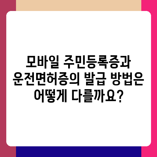 모바일 주민등록증과 운전면허증의 발급 방법은 어떻게 다를까요?