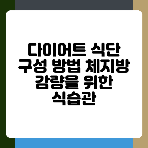 살 빼고 싶은 마음은 간절한데, 어떤 식단으로 시작해야 할지 막막하시죠? 저도 그랬어요. 다이어트는 시작이 반이라고 하지만, 뭘 먹어야 할지 몰라서 포기하는 경우가 많더라고요. 이 글에서는 체지방 감량에 효과적인 다이어트 식단을 구성하는 방법을 알려드릴게요. 제 경험과 여러 전문가의 의견을 바탕으로, 실패 없이 다이어트를 성공적으로 이끌 수 있는 실질적인 정보들을 나눠드리겠습니다.