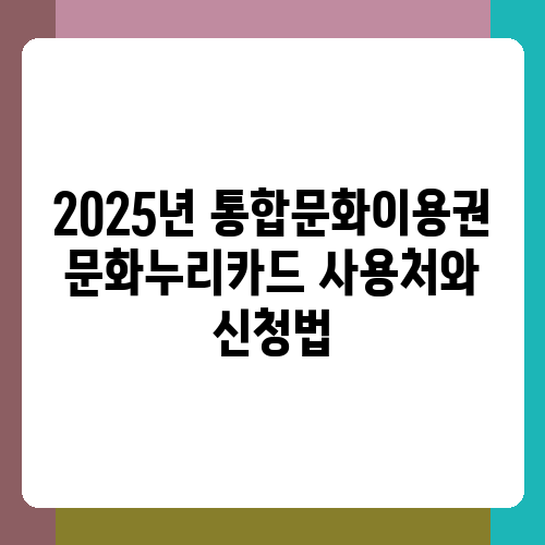 2025년이 밝았습니다. 문화생활을 풍요롭게 만들어주는 문화누리카드, 올해도 여전히 많은 분들이 기다리고 계실 텐데요. 어디서 사용할 수 있고, 어떻게 신청하는지 궁금하시죠? 이 글에서는 문화누리카드 사용처와 신청 방법에 대한 모든 것을 알려드리겠습니다. 복잡한 절차 없이 누구나 쉽게 이해할 수 있도록 자세히 설명해 드릴 테니, 편안하게 읽어보세요!