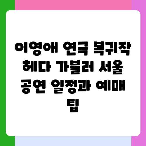 이영애 배우의 연극 무대 복귀 소식에 많은 분들이 기대감을 갖고 계실 거라고 생각합니다. 오랜만에 무대에 서는 이영애 배우의 연극 ‘헤다 가블러’ 서울 공연, 정말 기대되지 않으세요? 저도 너무 보고 싶어서 공연 정보를 찾아보고 예매 팁까지 정리해봤습니다. 이 글을 통해 이영애 배우의 ‘헤다 가블러’ 공연을 놓치지 않도록 꼼꼼하게 준비하실 수 있도록 도와드리겠습니다.