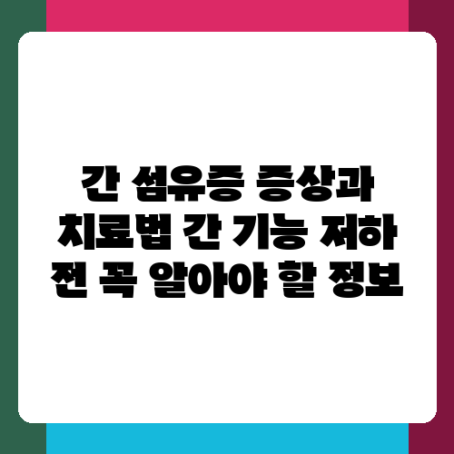 간 섬유증 초기에는 특별한 증상이 없어 자각하기 어렵다는 점이 문제입니다. 피로감이나 소화불량, 식욕 저하 등의 증상이 나타날 수 있지만, 이러한 증상들은 다른 질환에서도 흔히 나타나기 때문에 간 섬유증을 의심하기 어려워요. 하지만 간 섬유증이 진행되면 황달, 복수, 하지 부종 등의 증상이 나타날 수 있고, 심한 경우에는 간성 뇌증까지 발생할 수 있습니다. 황달은 눈과 피부가 노랗게 변하는 것이고, 복수는 복부에 물이 차는 것이며, 하지 부종은 발목이나 다리가 붓는 것을 말합니다. 간성 뇌증은 간 기능 저하로 인해 뇌 기능이 저하되는 상태를 말합니다. 이러한 증상들이 나타난다면 즉시 병원을 찾아 정확한 진단을 받는 것이 중요합니다. 평소 건강 상태를 잘 관찰하고, 이상 증상이 발견되면 망설이지 말고 전문의와 상담하세요.