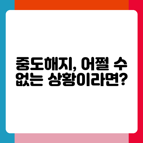 갑작스러운 실직이나 질병 등으로 인해 부득이하게 청년도약계좌를 중도 해지해야 하는 상황이 발생할 수도 있습니다. 이러한 경우에는 너무 걱정하지 마세요. 가입 기관에 상황을 설명하고, 가능한 해결책을 함께 모색하는 것이 중요합니다. 가입 기관에서는 개별 사정에 따라 유연한 대처를 해줄 수도 있으니까요. 다만, 중도 해지의 불이익을 최소화하기 위해서는 가입 전에 계약 조건을 충분히 이해하고, 가능하면 장기간 유지하는 것을 목표로 하는 것이 좋습니다. 그리고 해지 전에 가입 기관에 문의하여 상황을 설명하고, 가장 좋은 해결 방안을 찾는 노력을 해야겠죠.