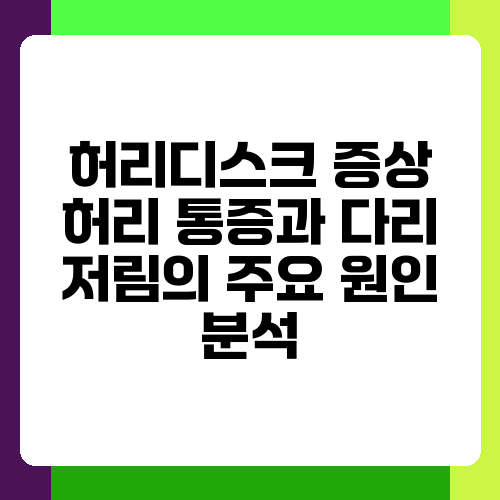 허리디스크의 증상은 사람마다 다르게 나타나지만, 가장 흔한 증상은 허리 통증과 다리 저림입니다. 허리 통증은 콕콕 쑤시는 듯한 급성 통증일 수도 있고, 묵직하고 뻐근한 만성 통증일 수도 있습니다. 다리 저림은 한쪽 다리에만 나타날 수도 있고, 양쪽 다리 모두에 나타날 수도 있으며, 발가락까지 저릴 수도 있습니다. 심한 경우에는 다리에 힘이 빠지거나 마비 증상이 나타날 수도 있으므로, 이러한 증상이 나타나면 즉시 병원을 찾아 정확한 진단을 받아야 합니다. 개인적인 경험으로는, 갑작스러운 허리 통증과 함께 다리가 저리는 증상 때문에 걷는 것조차 힘들었던 적이 있었어요. 결국 병원에 가서 정밀 검사를 받고 치료를 받은 후에야 일상생활을 회복할 수 있었습니다. 본인의 증상을 정확히 파악하여 적절한 치료를 받는 것이 중요하다는 것을 직접 경험했어요.