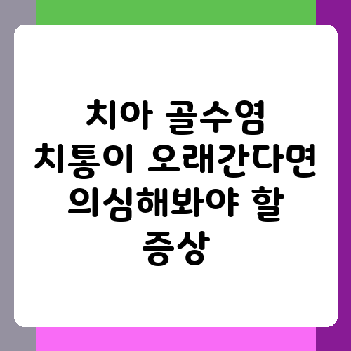 치아가 욱신거리고 아픈데, 단순한 충치나 신경치료 후의 통증이 아닌 것 같다고 느껴지시나요? 혹시 며칠, 몇 주, 심지어 몇 달 동안이나 치통이 지속되고 있다면 치아 골수염을 의심해 볼 필요가 있습니다. 단순한 치통으로 생각하고 방치하다가는 더 큰 문제로 이어질 수 있으니 주의해야 해요. 오늘은 치아 골수염으로 인한 오래가는 치통이 있을 때 의심해야 할 증상들을 자세히 알아보고, 어떻게 대처해야 하는지 함께 살펴보도록 하겠습니다.