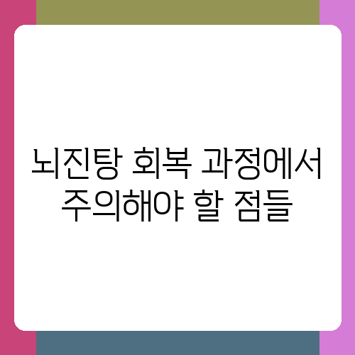 회복 과정에서 가장 중요한 것은 인내심을 갖는 것입니다. 뇌진탕은 완치까지 시간이 걸리는 질환입니다. 급하게 회복하려고 무리하면 오히려 증상이 악화될 수 있다는 사실을 명심해야 합니다. 술, 카페인, 그리고 담배는 뇌진탕 회복에 방해가 될 수 있으므로 피하는 것이 좋습니다. 또한, 격렬한 운동이나 스트레스는 회복을 지연시킬 수 있으니 최대한 자제해야 해요. 그리고 뇌진탕 회복 기간에는 스마트폰이나 컴퓨터 사용 시간을 줄이는 것이 좋습니다. 눈의 피로는 두통을 악화시키고 회복을 방해할 수 있거든요. 가벼운 산책이나 독서 등 가벼운 활동은 도움이 될 수 있지만, 머리가 아프거나 어지러움을 느낀다면 즉시 휴식을 취해야 합니다. 본인의 컨디션을 잘 체크하며 활동량을 조절하는 것이 중요합니다.