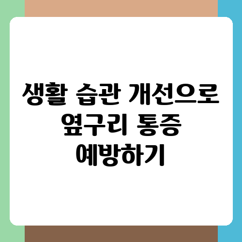 옆구리 통증을 예방하기 위해서는 평소 올바른 자세를 유지하고, 규칙적인 운동을 하는 것이 중요해요. 장시간 앉아서 일하는 습관은 옆구리 근육을 경직시키고 혈액순환을 방해하므로, 틈틈이 스트레칭을 하거나 가벼운 산책을 하는 것이 좋습니다. 또한, 수분 섭취를 충분히 하고, 균형 잡힌 식단을 유지하는 것도 중요해요. 특히 신장 결석을 예방하기 위해서는 충분한 수분 섭취가 매우 중요하다고 합니다. 저는 매일 아침 일어나서 물 한 컵을 마시는 습관을 가지고 있는데요, 여러분도 한 번 시도해 보세요.