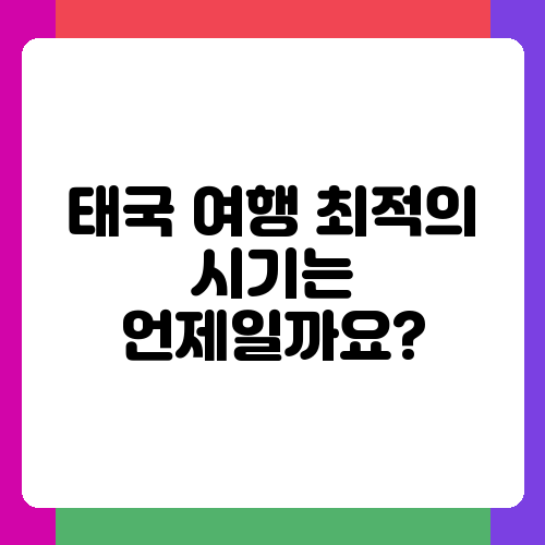 결론적으로 태국 여행의 최적 시기는 개인의 여행 스타일에 따라 다르다고 생각합니다. 맑고 쾌적한 날씨를 선호하고, 다양한 활동을 즐기고 싶다면 건기인 11월부터 4월 사이가 좋습니다. 하지만 저렴한 가격에 한적한 여행을 원한다면 우기인 5월부터 10월 사이도 매력적이라고 볼 수 있어요. 저는 개인적으로 건기의 쾌적한 날씨를 선호하지만, 우기의 저렴한 가격과 한적함 또한 매력적이라고 생각합니다. 각 계절의 장단점을 잘 비교해보고 자신에게 맞는 여행 스타일을 선택하는 것이 가장 중요하답니다.