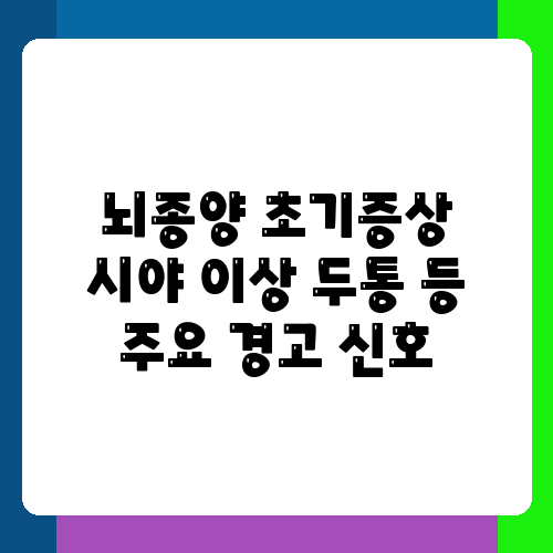두통과 시야 이상 외에도, 뇌종양은 다양한 초기 증상을 보일 수 있습니다. 예를 들어, 발작, 평형감각 상실, 언어 장애, 기억력 감퇴, 인격 변화 등이 나타날 수 있다고 합니다. 이러한 증상들은 뇌의 특정 부위에 종양이 생겼을 때 나타나는 전형적인 신호일 수 있습니다. 증상의 종류와 심각도는 종양의 위치와 크기, 종류에 따라 다르게 나타난다고 하니, 정확한 진단을 위해서는 반드시 전문의의 진찰을 받아야 합니다. 자신의 몸 상태를 꼼꼼히 살피고, 평소와 다른 증상이 나타난다면 즉시 의사와 상담하는 것이 최선의 방법입니다. 건강검진을 통해 미리 건강 상태를 체크하는 것도 좋은 예방책이 될 수 있다고 생각합니다.